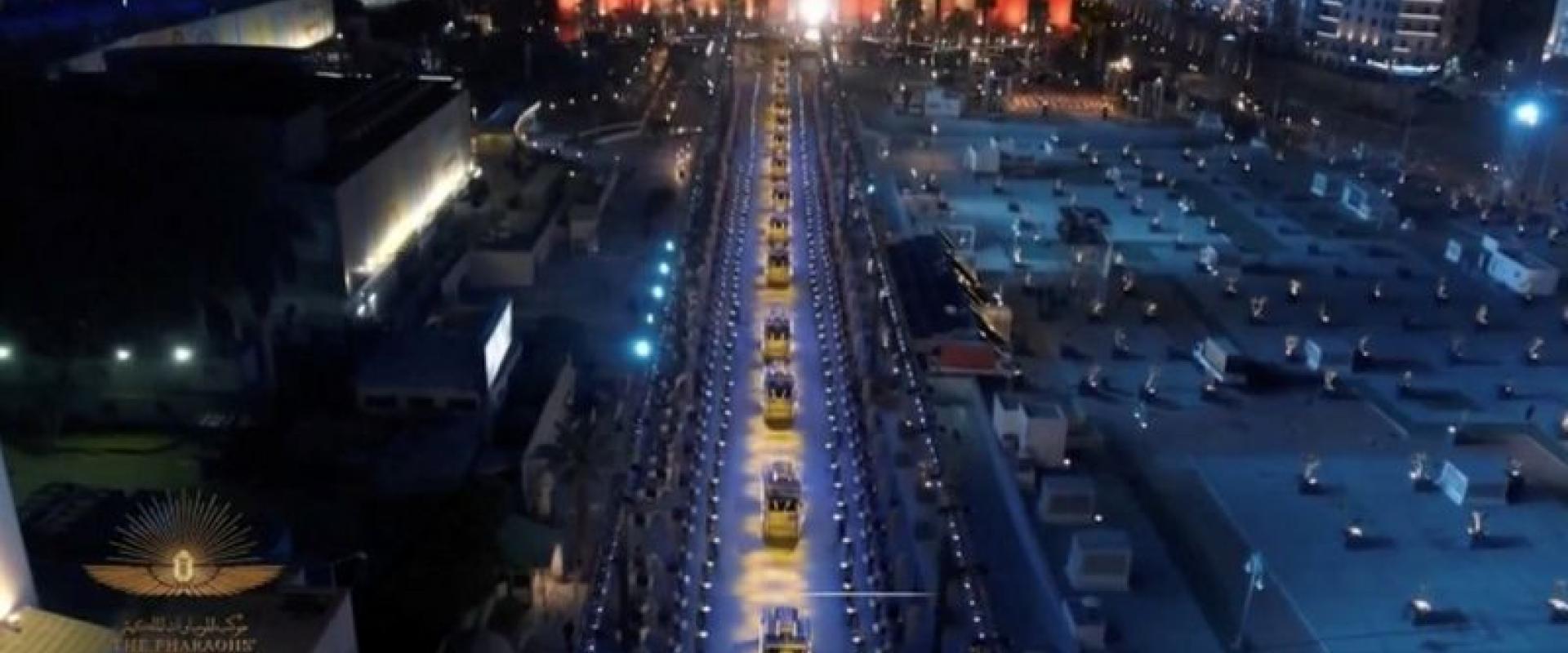في مشهد تاريخي مهيب انطلق موكب المومياوات الملكية من المتحف المصري في ميدان التحرير، بوسط العاصمة المصرية القاهرة مساء السبت، إلى المتحف القومي للحضارة المصرية بالفسطاط جنوب العاصمة، حيث ستستقر المومياوات الملكية في مثواها الأخيرة.