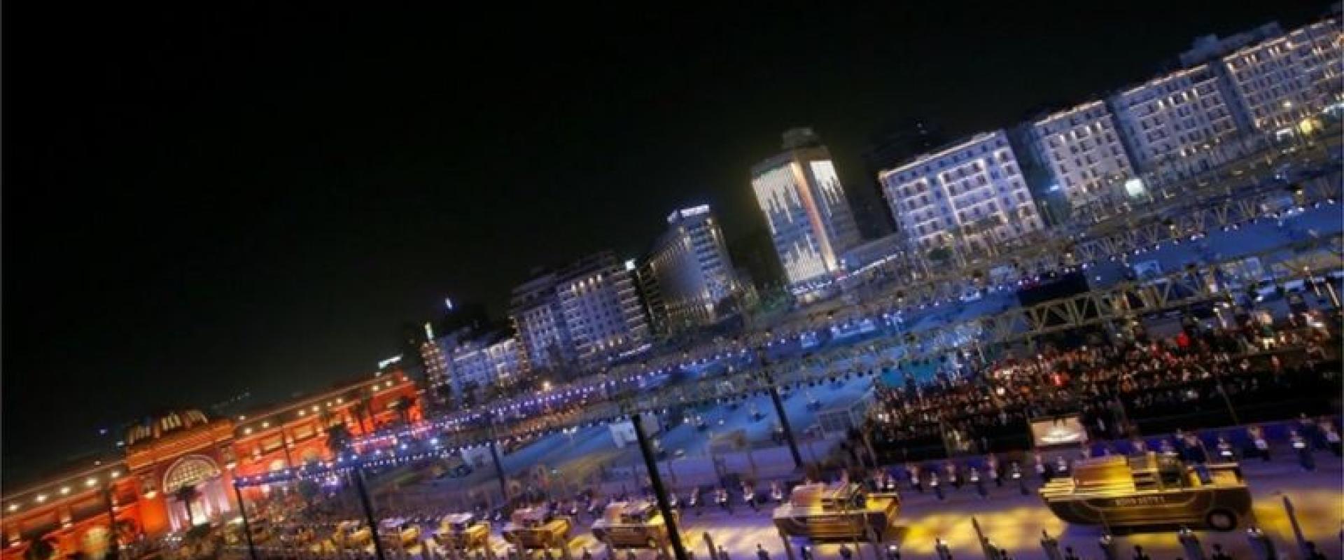 وتجمع آلاف المصريين لمشاهدة الحدث التاريخي، وعلى طول طريق الموكب، حيث بدأت مراسم فرعونية من ميدان التحرير لتنطلق العربات التي تحمل مومياوات الملوك، وسط أجواء احتفالية مهيبة، امتدت إلى متحف الحضارة حيث كان حفل موسيقي في انتظار الملوك.