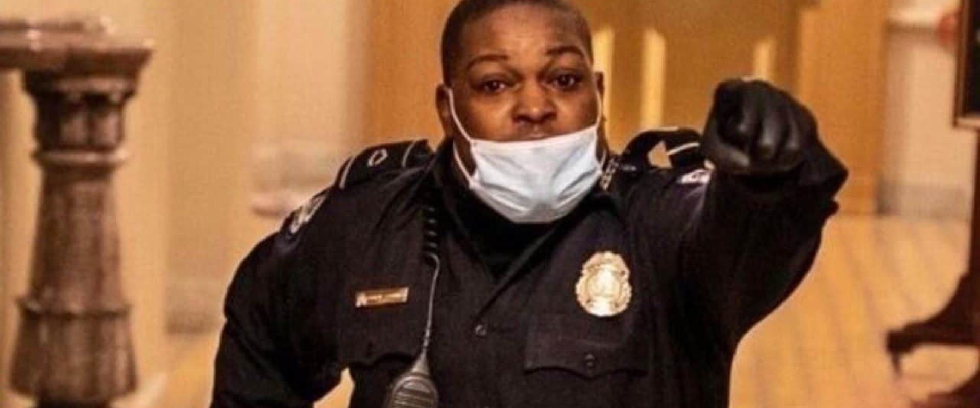 رافق نائبة الرئيس الأمريكي كامالا هاريس اليوم إلى حفل التنصيب، ضابط شرطة الكابيتول يوجين جودمان، الذي خاطر بحياته لحماية أعضاء الكونجرس عندما اقتحم أنصار ترامب المبنى في 6 يناير.