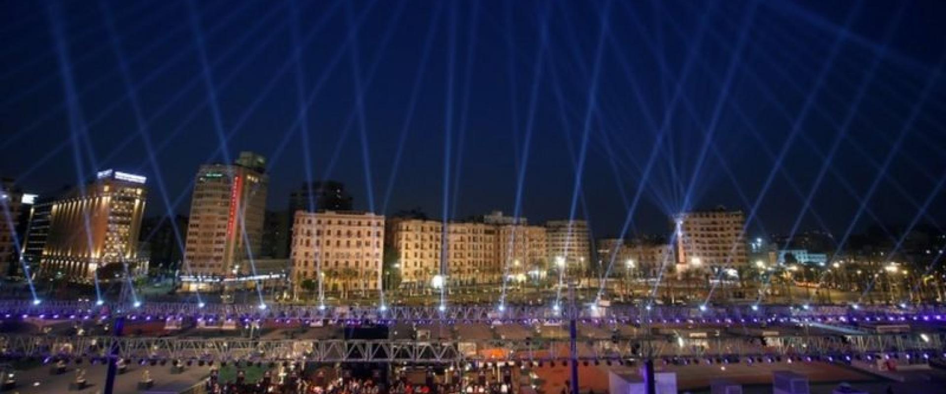 كما تزين ميدان التحرير بمسلة فرعونية تم جلبها من الأقصر، وتم تزيين المباني المحيطة بالأضواء.
