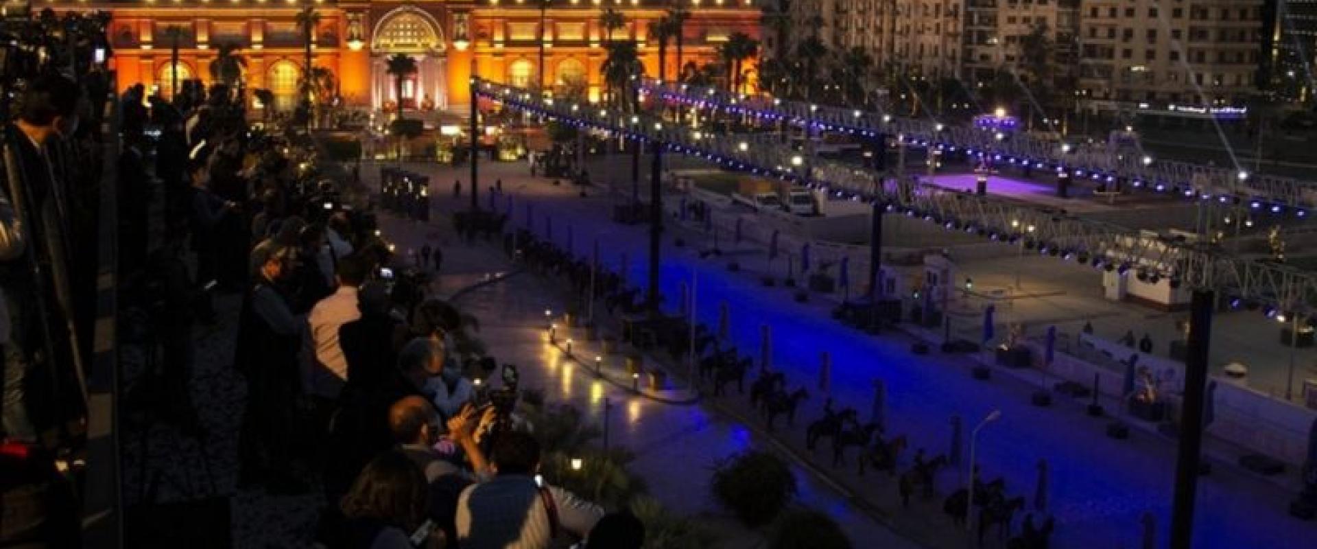 في مشهد تاريخي مهيب انطلق موكب المومياوات الملكية من المتحف المصري في ميدان التحرير، بوسط العاصمة المصرية القاهرة مساء السبت، إلى المتحف القومي للحضارة المصرية بالفسطاط جنوب العاصمة، حيث ستستقر المومياوات الملكية في مثواها الأخيرة.